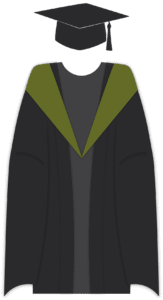 [​academic_dress_dress_alt] => UD_Masters gown with trencher and hood (Olive Green) - Master of Philosophical Studies